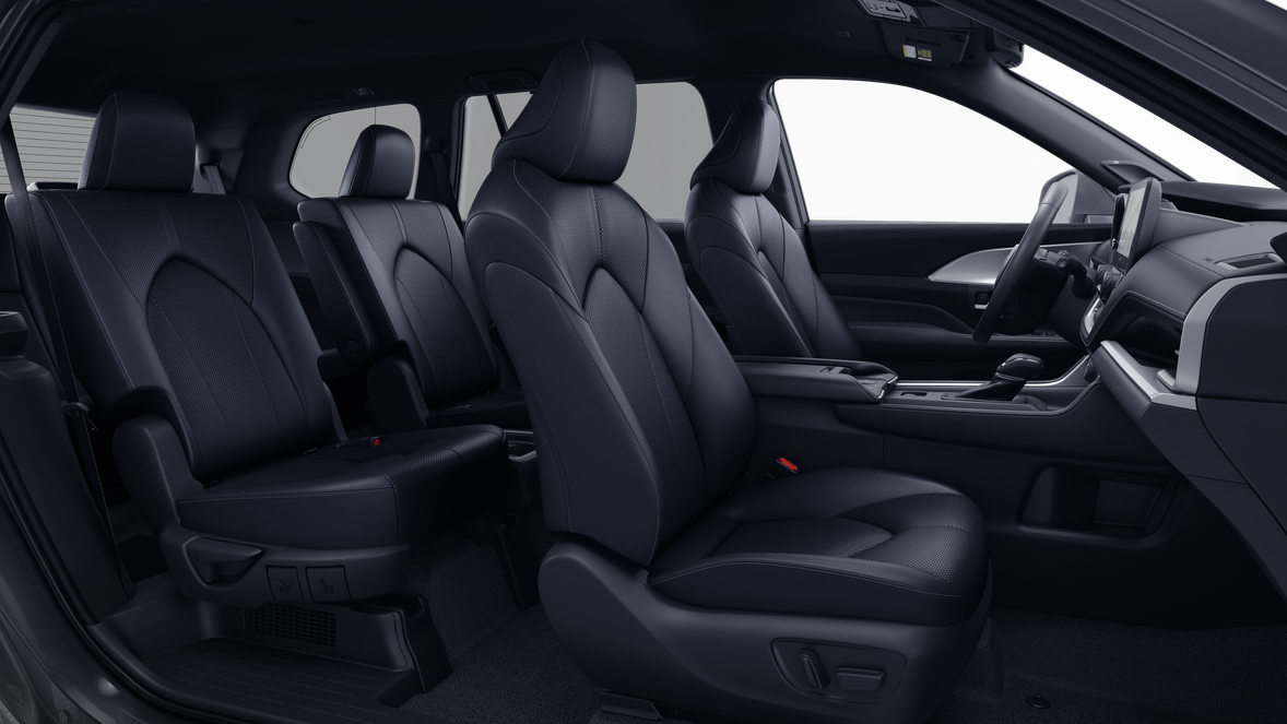 • 7-passenger seating with second-row fold-down captain's chairs and fold-down inboard armrests, adjustable headrests and two cup holders mounted on the floor; and 60/40 split, fold-down third-row seats with sliding headrests and recline function