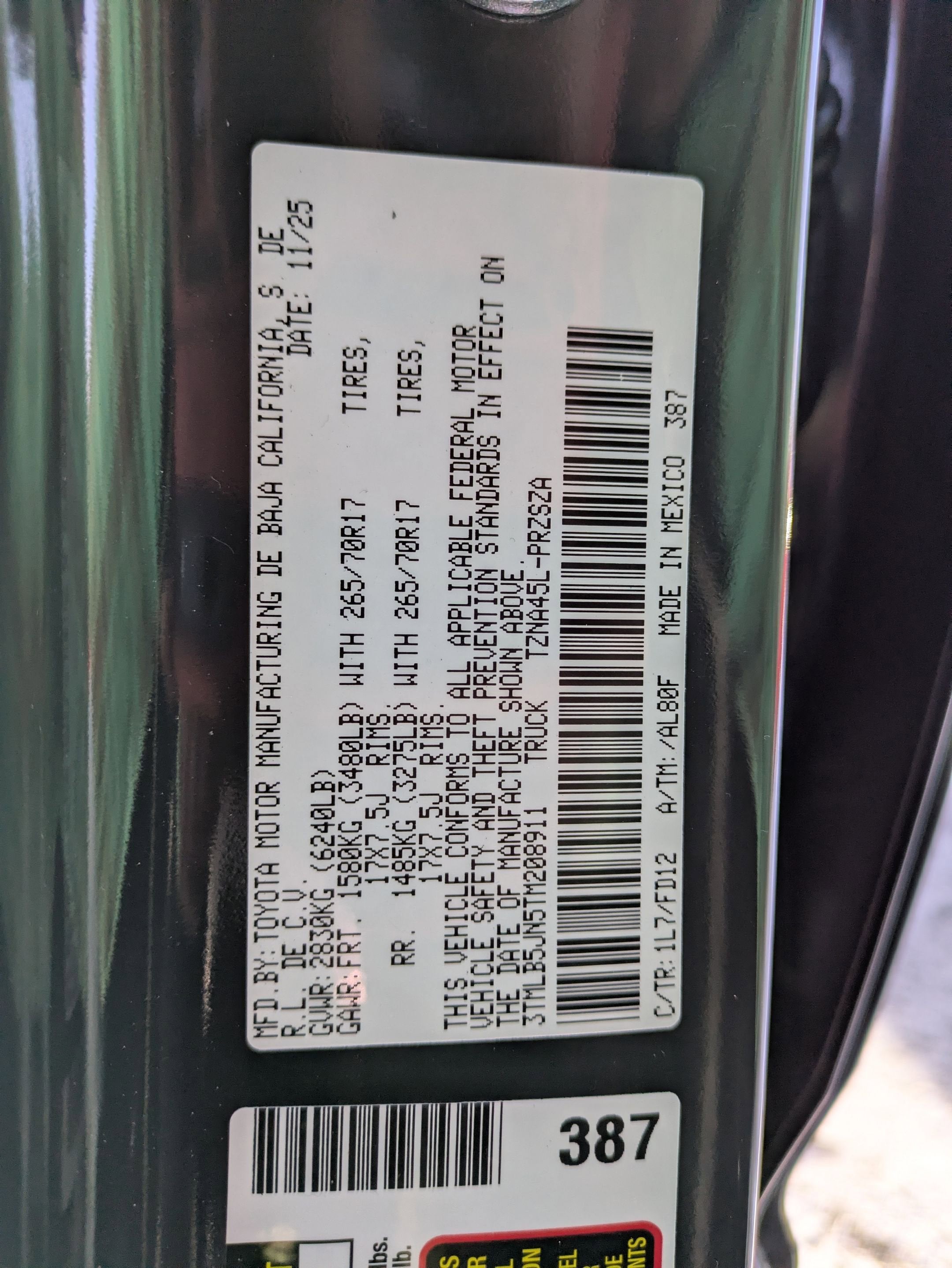 • Vehicle Name: Toyota Tacoma 4WD