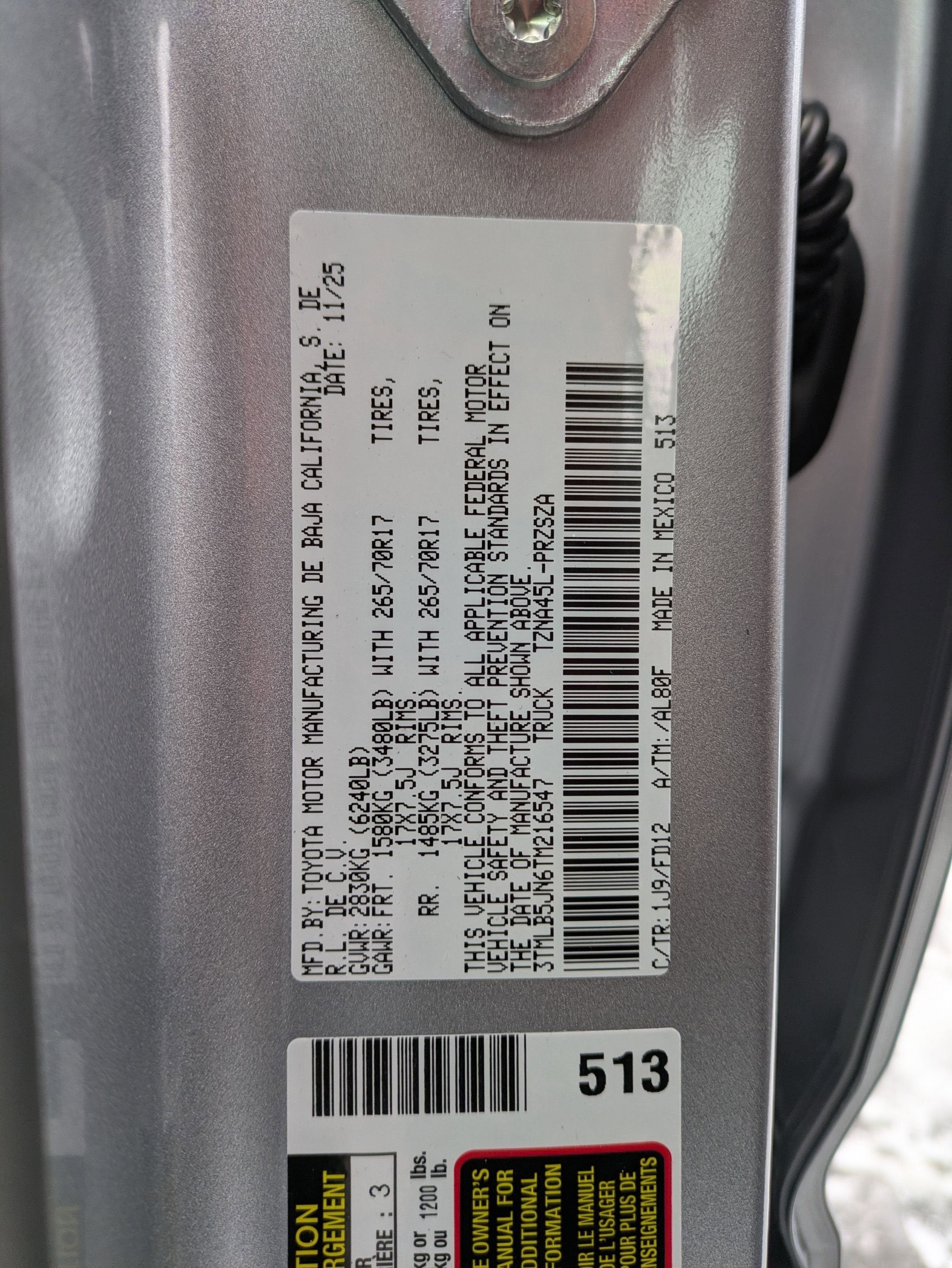 • Vehicle Name: Toyota Tacoma 4WD