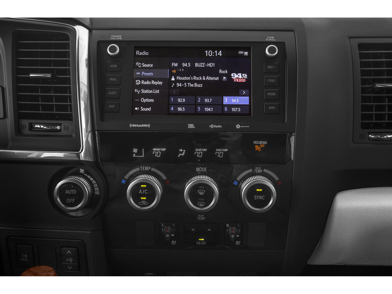 - Radio: Entune Premium JBL Audio with Navigation -inc: App Suite w/6.1-in, high-resolution touch-screen w/split-screen display, AM/FM cache radio, HD Radio, CD player, 15 JBL GreenEdge speakers w/subwoofer amplifier, auxiliary port, USB 2.0 port w/iPod connectivity and control, advanced voice recognition, hands-free phone capability, phone book access, music streaming via Bluetooth® wireless technology, Siri Eyes Free, HD Radio Predictive Traffic and Doppler Weather overlay and SiriusXM Satellite Radio w/3-month All Access trial, See toyota.com/entune for details