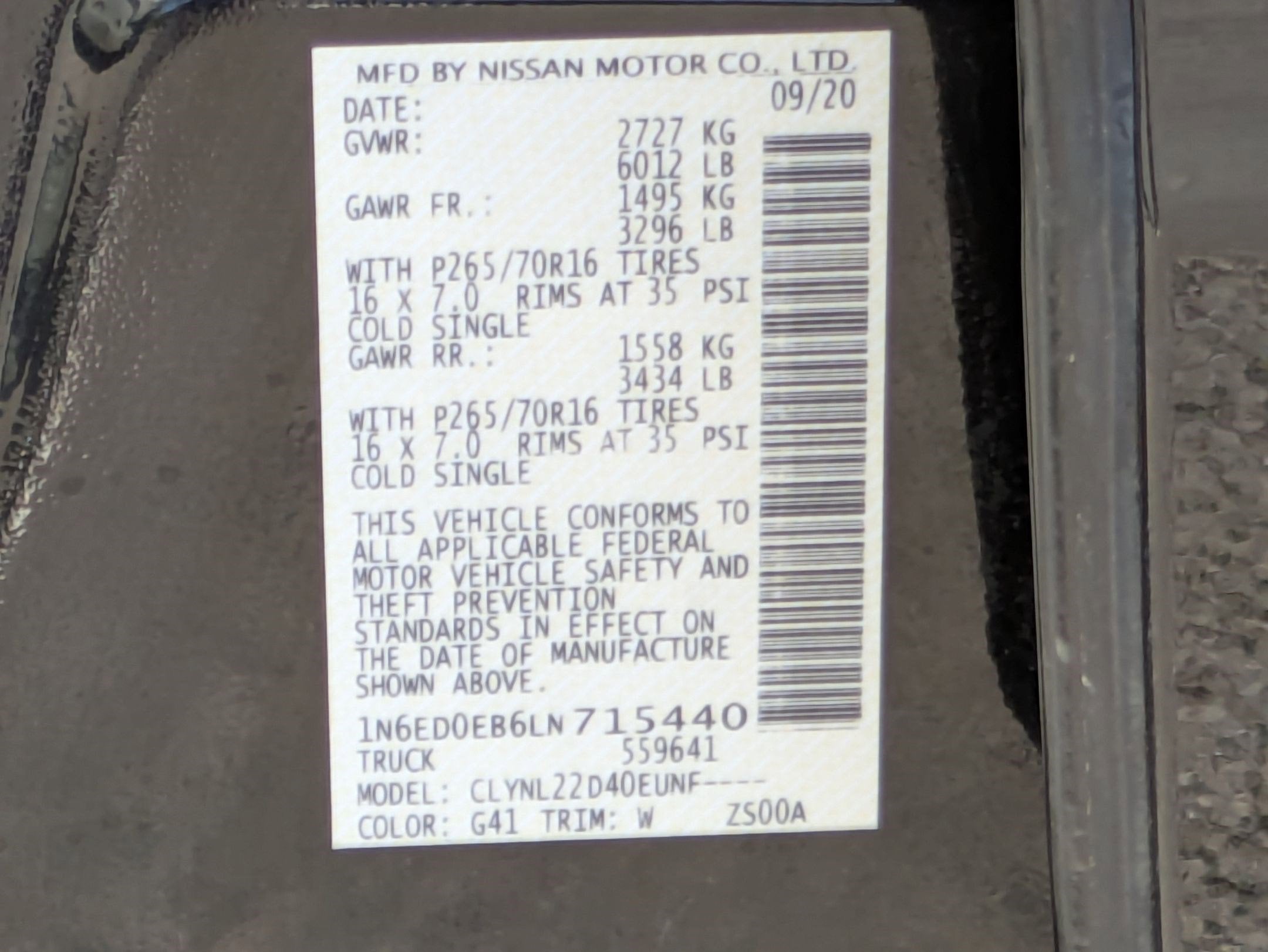 - Vehicle Name: Nissan Frontier