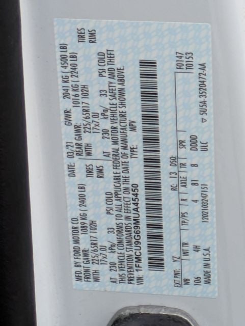 AWD. Odometer is 7433 miles below market average! 2021 Ford Escape SE AWD 8-Speed Automatic 1.5L EcoBoost Oxford White