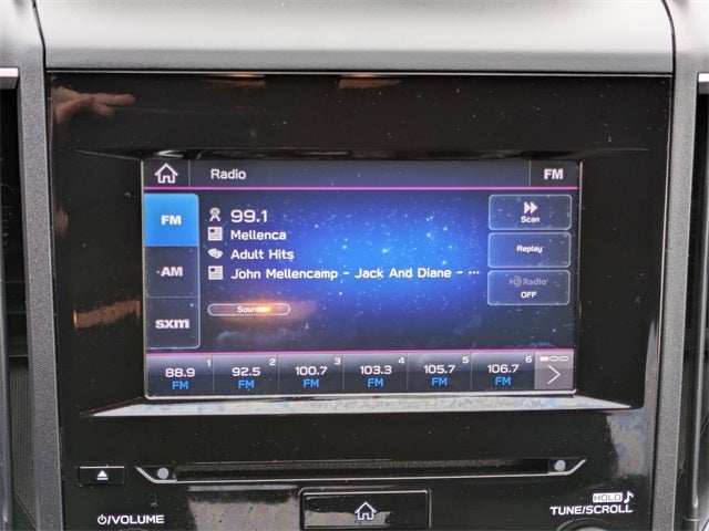- Radio: Subaru STARLINK 6.5" Multimedia Plus System -inc: AM/FM stereo, HD Radio, single disc CD player w/MP3/WMA/CRR/RW file capability, multi-touch gesture high resolution display screen, voice activated controls, Bluetooth® audio streaming and hands-free phone connectivity, Bluetooth® hands-free SMS text messaging connectivity, iPod control capability, SiriusXM All Access Radio (4 months free trial/subscription required after), SiriusXM Travel Link (4 months free trial/subscription required after), 6 speakers (2 dash panel tweeter, 2 front door and 2 rear door), 3.5mm auxiliary input jack, dual USB input ports and roof mounted audio, satellite and connected services antenna