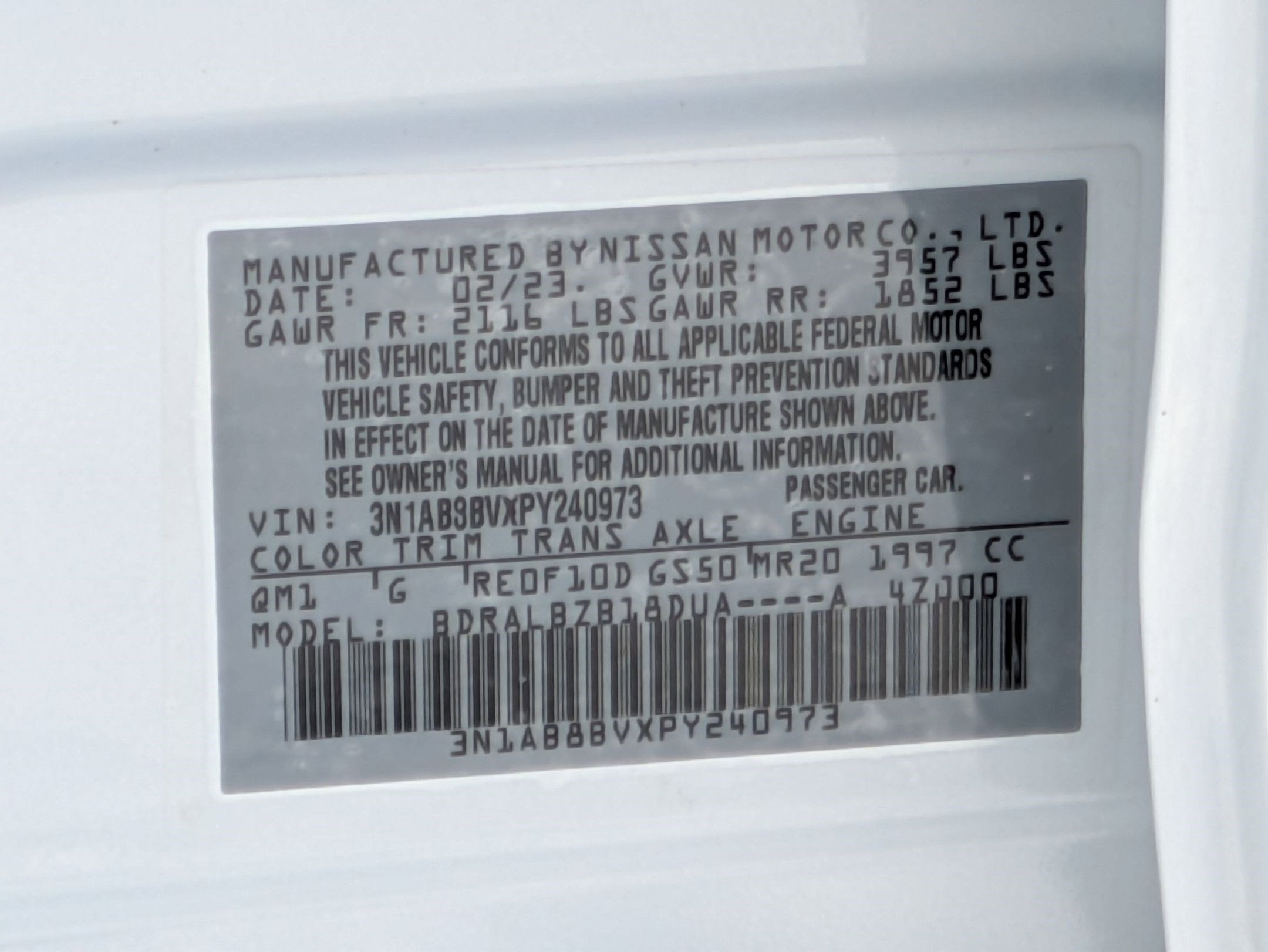- Vehicle Name: Nissan Sentra
