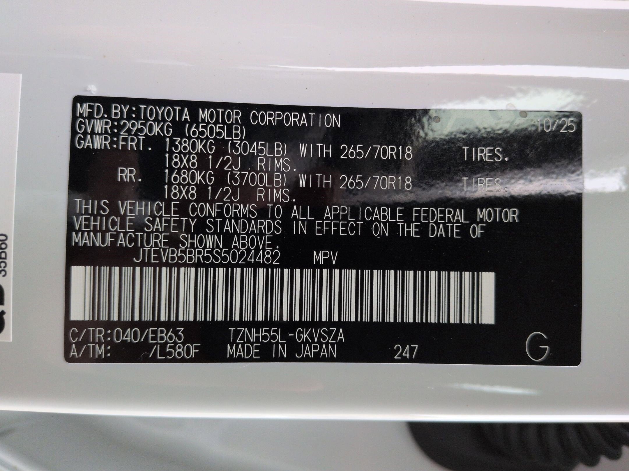 - Front Tire Size: P265/70SR18